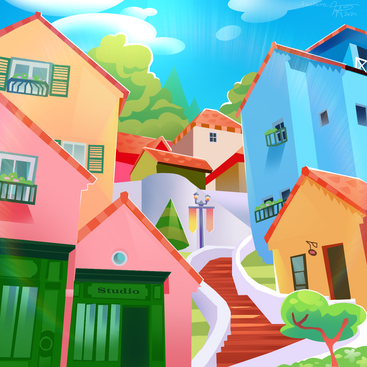 One of the subjects I focus on most right now is environment art. I really like drawing different settings from the world. City's, houses, landscapes/nature and much more. At my internship at Animate the World in Breda I had the oppertunity to illustrate lots of background for an animation project called 'T'zoet Breda'. (see at the bottom)